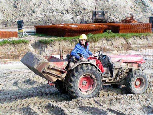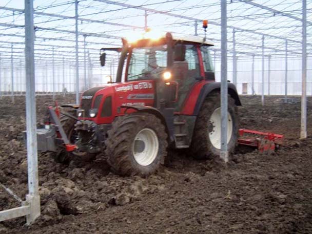 Krachtige grote trekker voor zwaar grondverzet en transport. Beschikbaar met 4 aanbouwdelen.